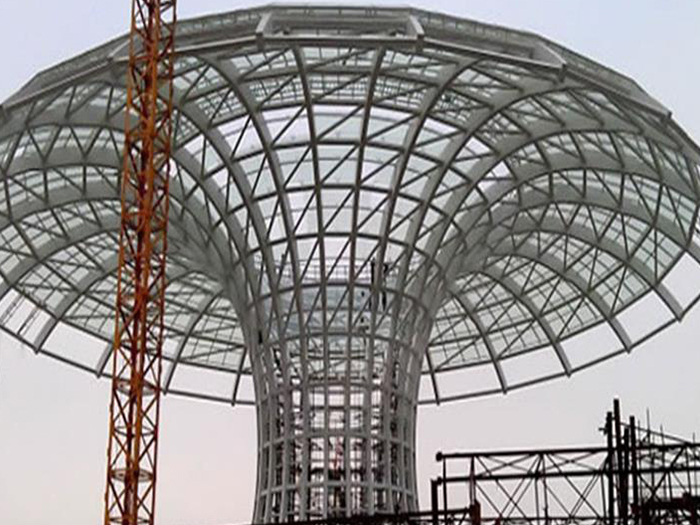 二、球形网架结构因其结构新颖,受力合理,自重轻、用钢量低等优点。如大型体育场馆球形伊春螺栓球网架、公共场馆球形网架、电厂伊春螺栓球网架、水泥工业球形网架、仓储物流球形网架、伊春干煤棚工业球形网架、伊春收费站伊春加油站球形网架、展览中心、影剧院、商场、航站楼、候车厅、工厂伊春车间、仓库、电视塔等球形螺栓球节点网架。国内球形网架结构主要分为:伊春焊接球节点网架及螺栓球节点网架两种。螺栓球节点网架其构件工厂内加工量较大,现场安装便捷,适用于现场工期紧,伊春施工条件、用电量受制约,网架形状复杂、伊春杆件定位困难的异形结构。螺栓球节点球形网架系统基本由伊春杆件、螺栓球、支撑支座等组成。按照节点形式可分为交叉伊春桁架体系、四角锥体系、三角锥体系等。支撑方式多为固定支座支撑。对于大面积、大跨度及有特殊受力或伸缩要求的网架结构可采用橡胶支座、滑移支座、球铰支座等支撑形式,以满足结构自身的受力稳定、均衡,便于内力释放等设计要求。